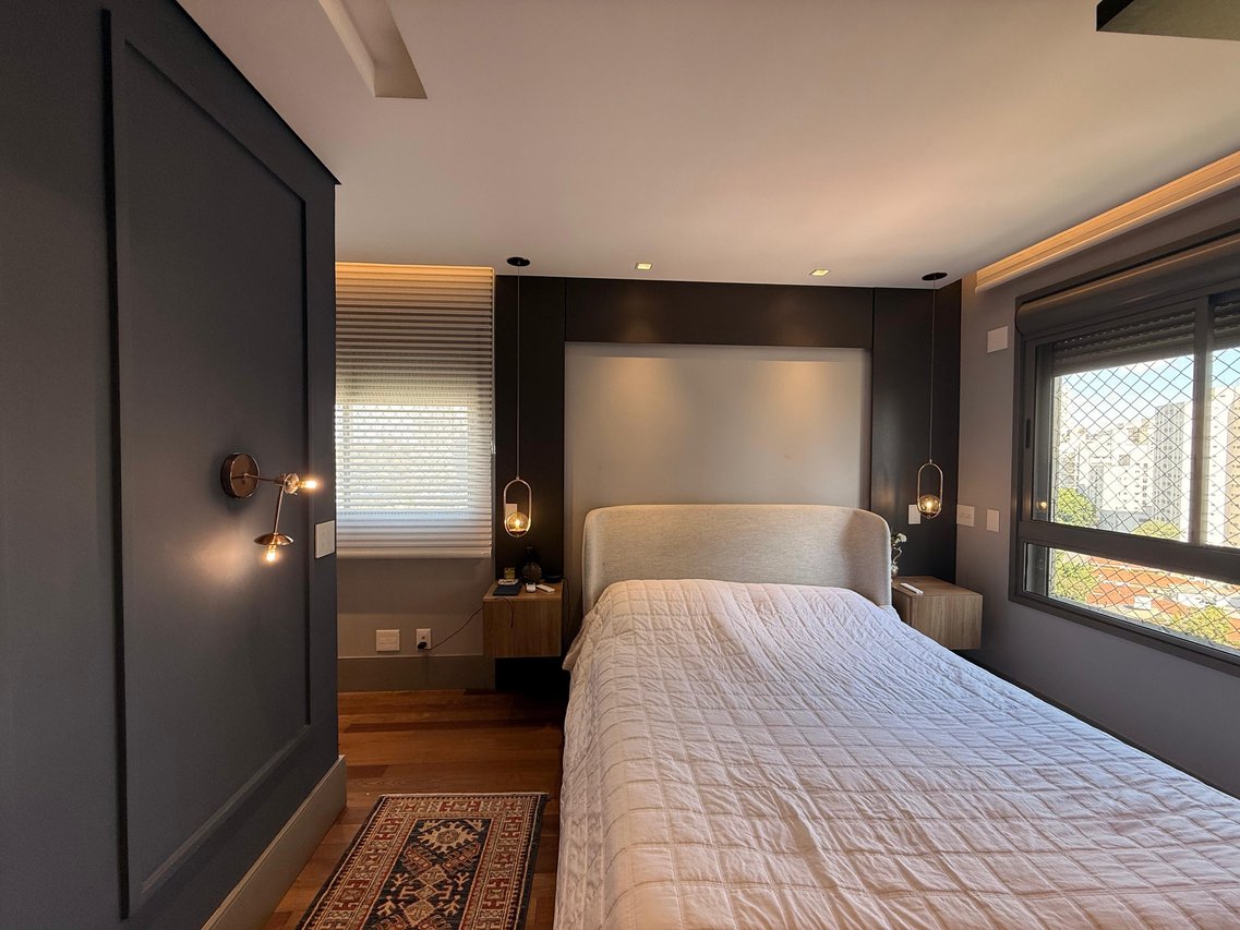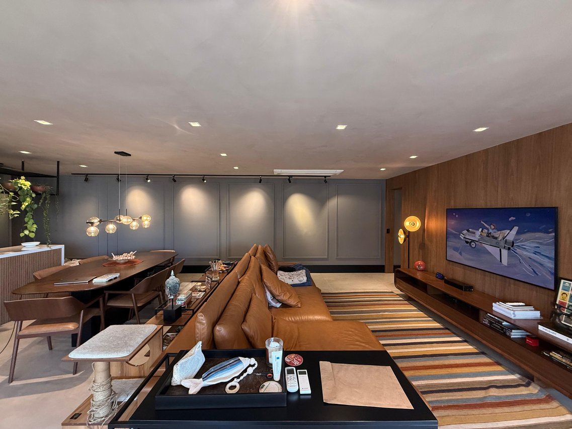 Apartamento mobiliado na Rua Paulistânia, são 111m² distribuídos em um living amplo com sala de estar e jantar integrado a varanda gourmet, com churrasqueira a carvão, e com vista para um lindo pôr do sol, ar-condicionado embutido, cozinha americana com Área de Serviço integrada.